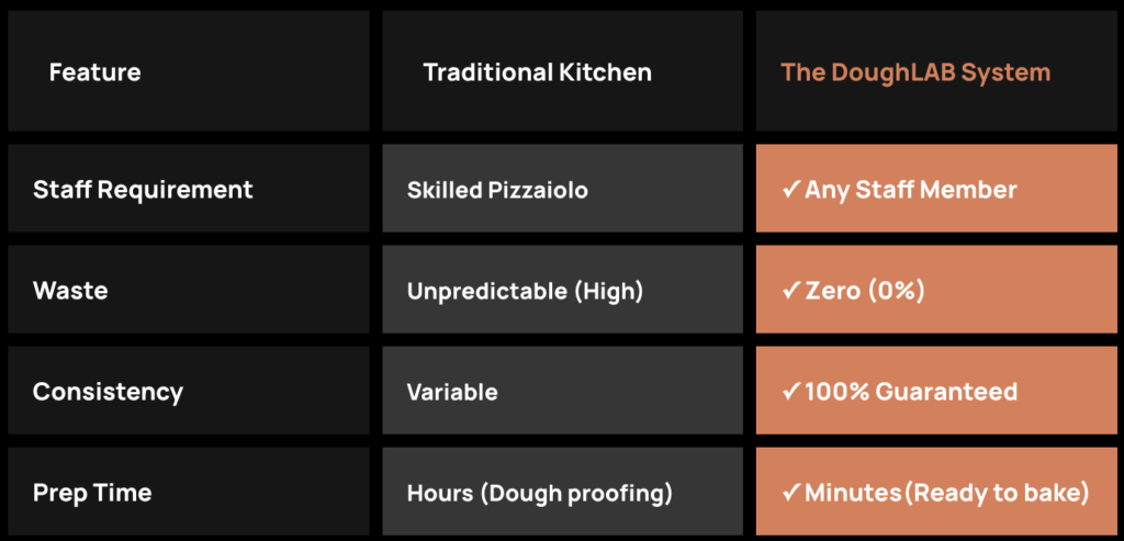 We deliver genuine, hand-stretched sourdough pizza that makes your kitchen operation effortless. Finally, a system where quality and consistency go hand in hand—no skilled chef required. Because simplicity shouldn’t mean lower quality.